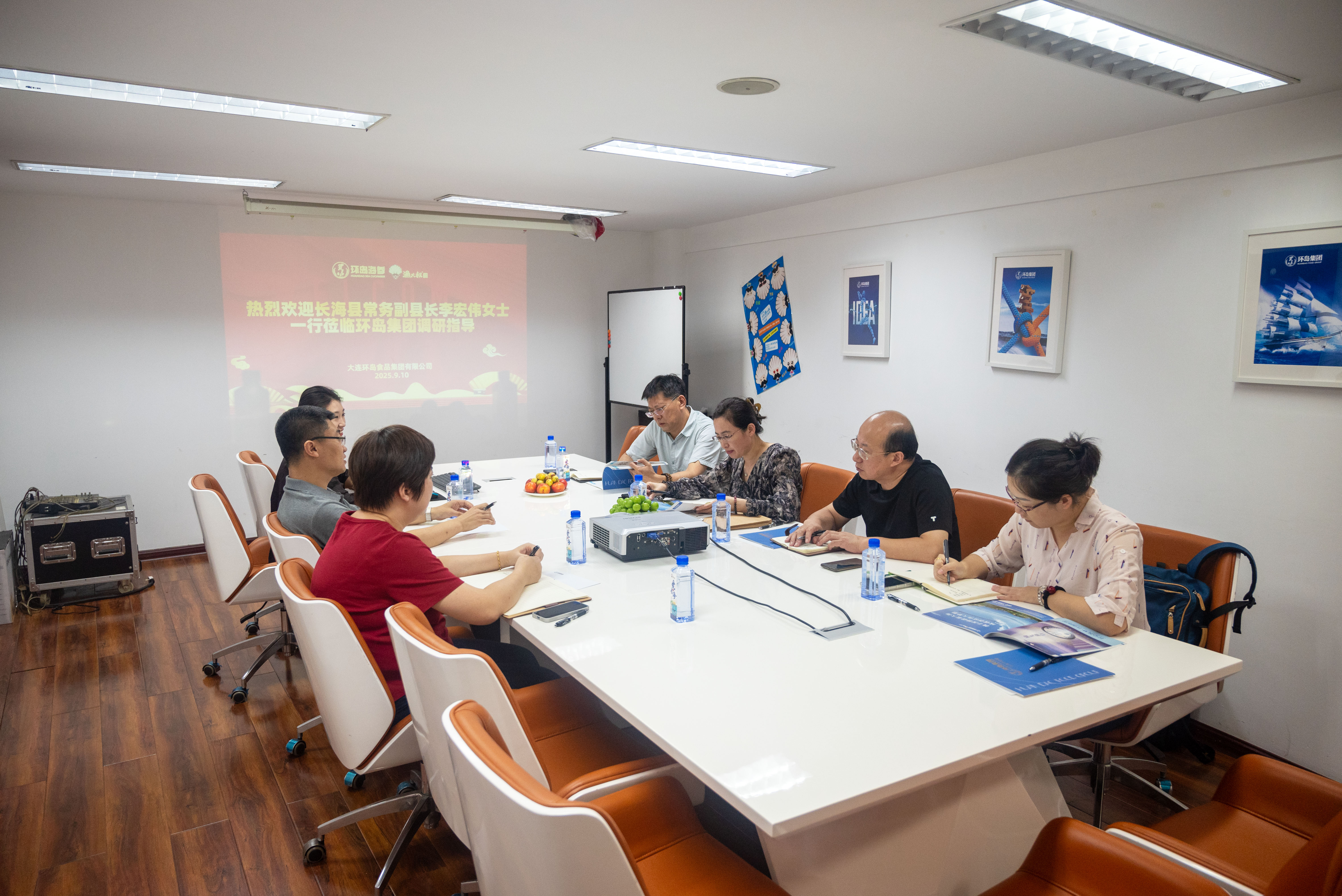 9月10日,長??h常務副縣長李宏偉 攜縣發改局、商務局、統計局等部門領導 蒞臨環島集團調研指導 調研組詳細了解企業在海參、海鮮零食、預制菜等方面的發展情況。座談會上,王振東董事長匯報了企業發展現狀與規劃。 李宏偉副縣長對環島集團在推動地方海洋產業發展中的作用表示肯定,并表示政府將持續營造良好發展環境,助力企業做優做強。 環島集團將不負厚望,致力于打